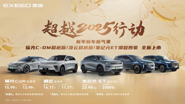 至此,星途集合了瑶光C-DM超越版、凌云300T超越版和星纪元ET增程四驱版三款车型,由此打响了“超越2025行动”第一枪。