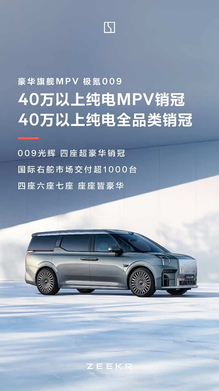 2024年,豪华旗舰MPV全新极氪009上市,左舵和右舵版本全球同步发售,加上四座超豪华旗舰MPV极氪009光辉的上市,作为豪华MPV领导者,极氪009家族集结四座、六座、七座,座座皆豪华。全新极氪009自上市以来,已连续5个月蝉联40万以上纯电全品类销量冠军,极氪009光辉上市159天即交付1500台,刷新了四座超豪华旗舰MPV交付速度纪录,并稳居超豪华四座车2024销量榜冠军。极氪009家族用卓越的市场表现证明了中国豪华MPV领导者的不俗实力。