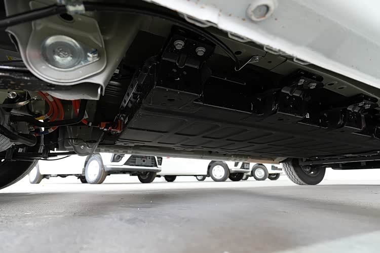 底盘方面,两款车型均采用的是前麦弗逊后钢板弹簧的配置,后板簧片数为6片,在保障承载的同时也保障了一定的乘坐体验,盲窗车型整备质量为1665kg,额定载重为1280kg。