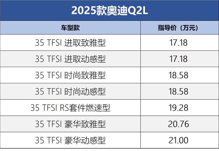 官方降价2025款奥迪Q2L上市售17.18万元起