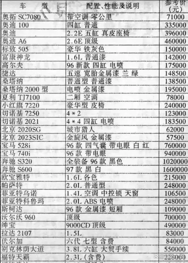 现在市场上能买到的最便宜的主流车型是啥?大概是奔腾小马或者五菱宏光miniEV,那30年前呢?