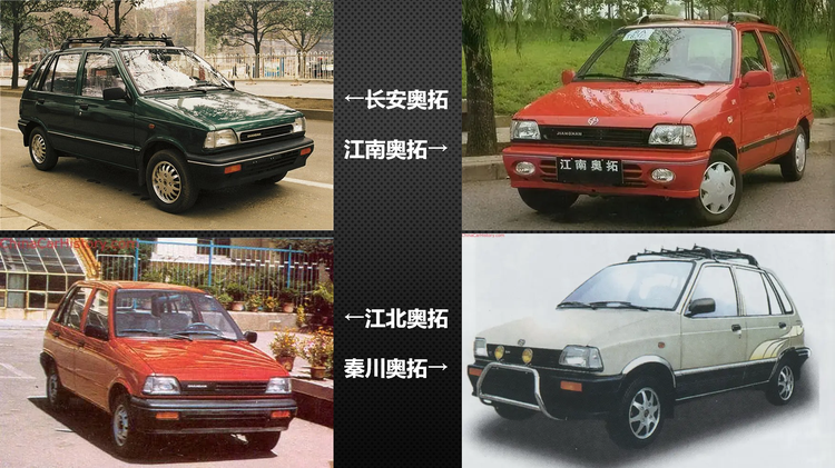 如果对奥拓再熟悉一点,你可能还知道,长安奥拓之外,还有个江南奥拓,一样的车,不一样的logo,不止这俩,国内最多同时存在过长安奥拓、江南奥拓、江北奥拓、秦川奥拓四种不同厂家生产的奥拓。