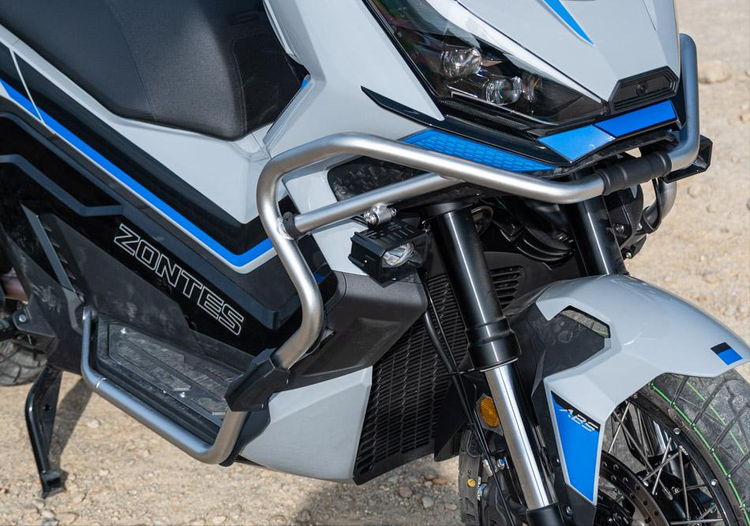颜色方面,Zontes原厂提供机架灰 (Grey,Blue),珍珠白 (White,Gold) 以及金石绿 ( Golden Stone Green) 三种车身配色。