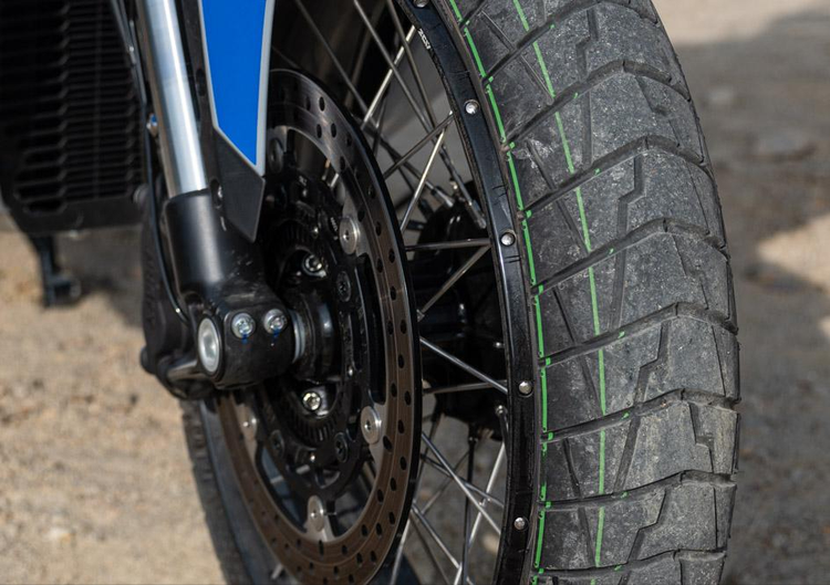轮圈则是采用前17后14寸真空辐条轮圈,刹车则是前后J.Juan刹车卡钳,配有可自行选择关闭或开启ABS系统,强调其越野属性!