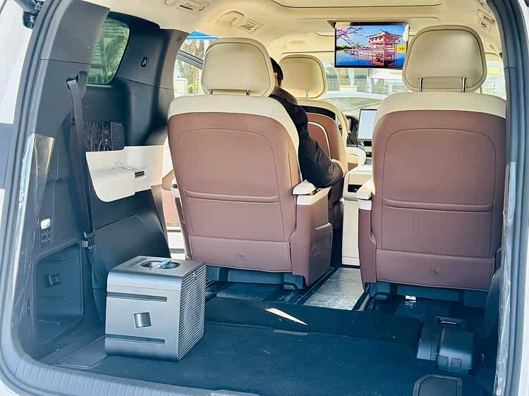 当然,对于一辆MPV来说,后排才是重点所在。比亚迪夏采用了2+2+3式的7座布局,第二排双独立Nappa真皮超柔云感座椅支持电动调节、电动腿托、通风/加热/按摩等多种功能。乘客不仅可以通过内侧扶手进行控制,还可以通过门板位置的按键和拨杆进行操作。同时,前排座椅后方还配备了折叠小桌板,与15.6英寸吸顶娱乐屏、车载冷暖冰箱、“迪声”28扬音响系统+Hi-Fi音乐头枕、双天窗等配置相得益彰,为乘客带来了头等舱般的尊贵舒享体验。