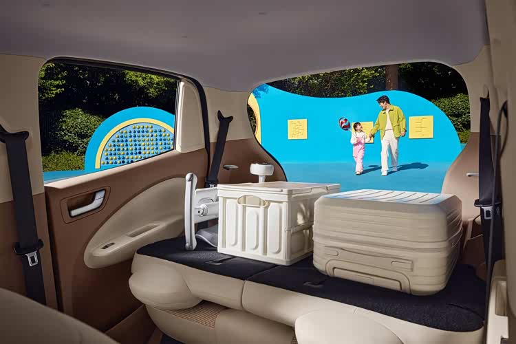 同时,宏光MINIEV四门版后备箱容量达123L,放倒后排座椅后可拓展至745L,外加全车19处储物空间,装载能力更强,收纳更有序,提供更适合多人出行需求的空间体验。