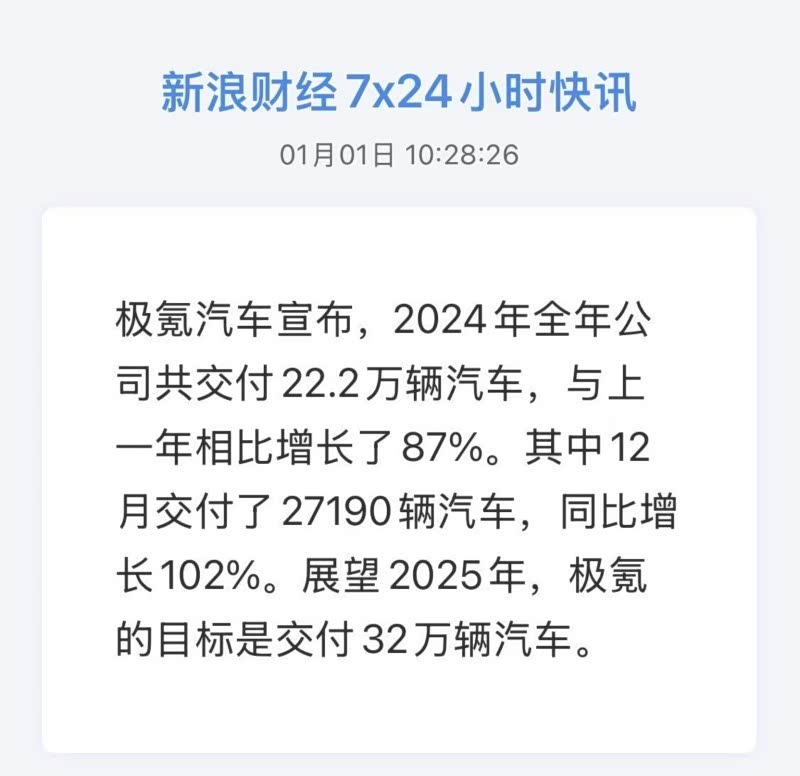 2025年,极氪品牌设定全年32万台销量目标,较2024年增长约10万台,增速达44%。为此,极氪将升级现有车型产品力,推出3款新车,并加速智能进化,吸引更多智能化领域用户。同时,极氪将调整渠道结构,大幅提升大店占比至70%,优化品牌展示与客户体验。此外,极氪将积极进军国际市场,拓宽用户基础,助力销量翻倍。这些举措将共同推动极氪实现2025年的销售目标。