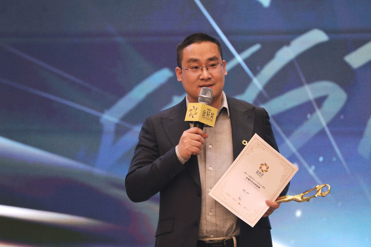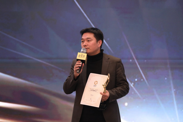 《一定红坦克500阿拉善神秘挑战》获得社会化营销金奖,长城坦克品牌执行副总经理谷玉坤,感谢金轩奖给一定红营销事件颁发的奖项。