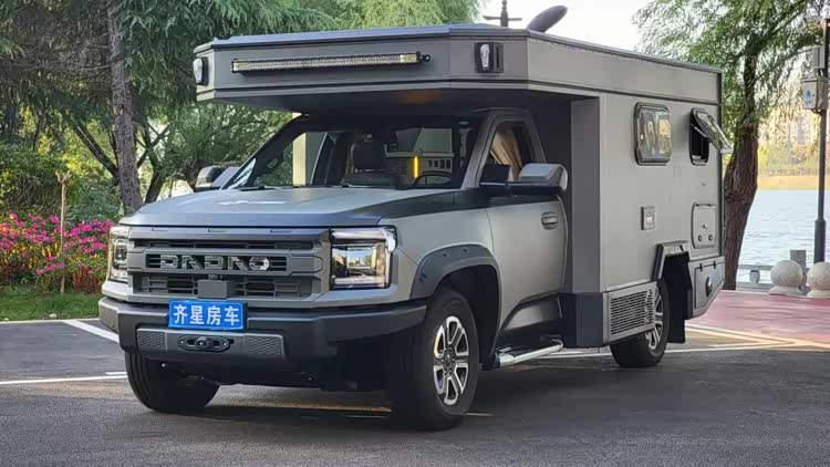 来自星浩FT2224-Y房车基于江铃大道皮卡底盘改装而成,作为一款四驱皮卡硬升顶房车,适合日常通勤及短途露营出行,注重越野性能的同时,其硬升顶设计提供了更大的内部空间,能够满足家庭或小团体旅居需求。 目前指导价格为44.8万元 。