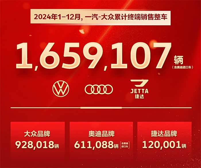 2024年,一汽-大众全年累计售出165.9万辆新车,稳居国内销量前三、位列合资品牌销冠,并且在各个细分市场拿下多个销量第一的成绩。我们可以发现,在新能源时代,像一汽-大众这家老牌合资并没有像一些合资车企一样选择躺平,甚至离开牌桌,而是通过积极求变的企业发展策略,愈战愈勇,立住了合资品牌的“排面”!
