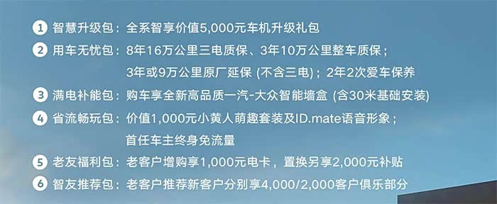 2025款一汽-大众ID.4 CROZZ此次在动力、车机以及智驾等方面均迎来了升级,同时官方还带来了相关购车权益,其中包含5000元车机升级包、8年16万公里三电质保、3年10万公里整车质保、首任车主终身免流量等等。