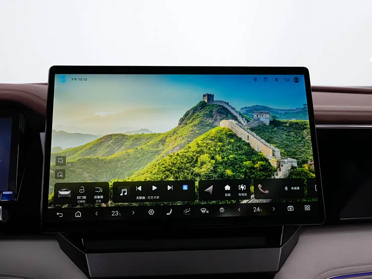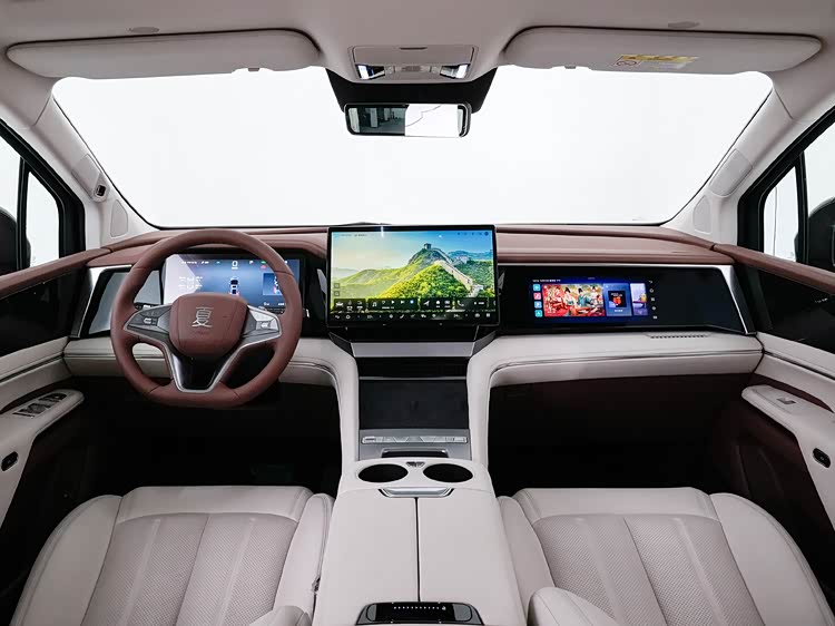 车载系统配备了DiLink 150操作系统,并搭载了BYD 9000定制AI芯片,该芯片支持中控屏、副驾屏、中央吸顶屏三屏的影音联动功能,同时还支持手柄游戏、AR眼镜等流行游戏应用。在音响技术上,夏首采用了自主研发的“迪声”28扬音响系统,能够提供全景音效,同时其前排和中排座椅都配备了Hi-Fi音乐头枕。