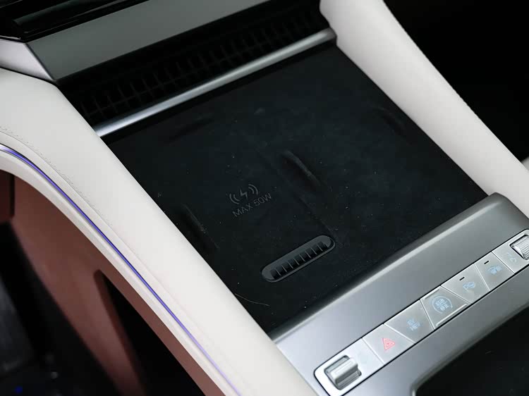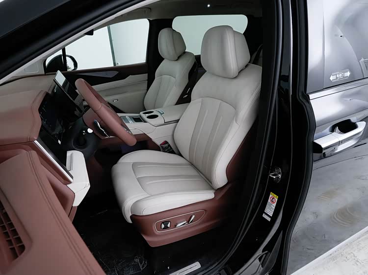 车辆内部设计为2+2+3的七座布局,前排座椅使用了Nappa真皮超柔云感真皮座椅,提供通风、加热、腰撑、记忆功能和迎宾模式,而主驾座椅还配备了按摩功能。