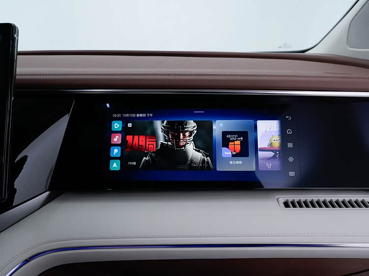 第二排的座椅全部使用了Nappa真皮制成的超柔云感材料,并配备了两张独立的座椅。在配置方面,座椅还提供了四向电动调节、电动腿托、座椅通风/加热和按摩等多项功能,并且前方还配备了可折叠的桌板。此外,车的后排还配备了冰箱、彩电和宽敞的沙发,还有一个15.6英寸的吸顶屏,支持与游戏手柄、AR眼镜等设备的连接,中央扶手的下方还嵌入了一个车内冷暖冰箱。