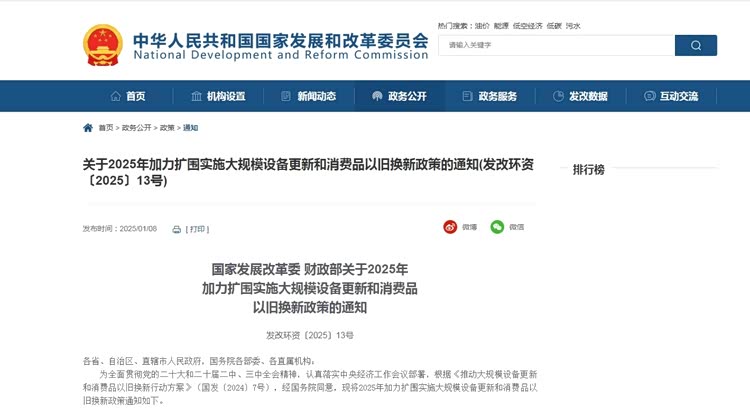 2025年汽车以旧换新政策终于落地!1月8日,国家发展改革委和财政部联合发布了《关于2025年加力扩围实施大规模设备更新和消费品以旧换新政策的通知》。