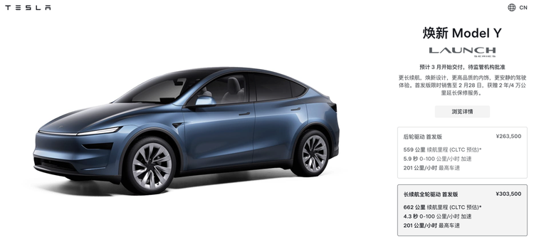 1月10日,特斯拉在国内市场正式推出了Model Y焕新版车型,此次共推出两款配置,指导价分别定为26.35万元与30.35万元,预计将于3月启动交付流程。相较于老款车型,新车在外观、内饰、动力、续航及配置等多方面均进行了显著升级,当然,随之而来的也有价格上万余元的上调。