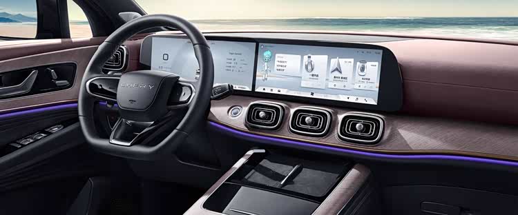 内饰上,采用环抱式宽体悬浮座舱设计,中控台配备了24.6吋极智丝滑真曲面屏,包括液晶仪表盘和中控屏,科技感十足。车内采用了大量软性材质包裹,提升了乘坐舒适度,在空间布局上充分考虑了家庭出行的需求,瑞虎9拥有丰富的储物空间,无论是日常通勤还是长途旅行,都能轻松应对。
