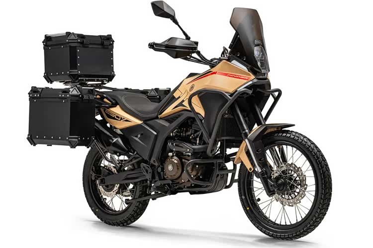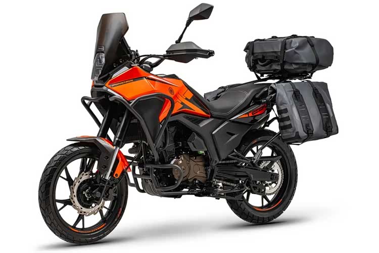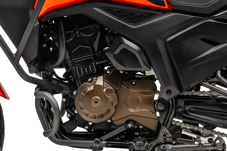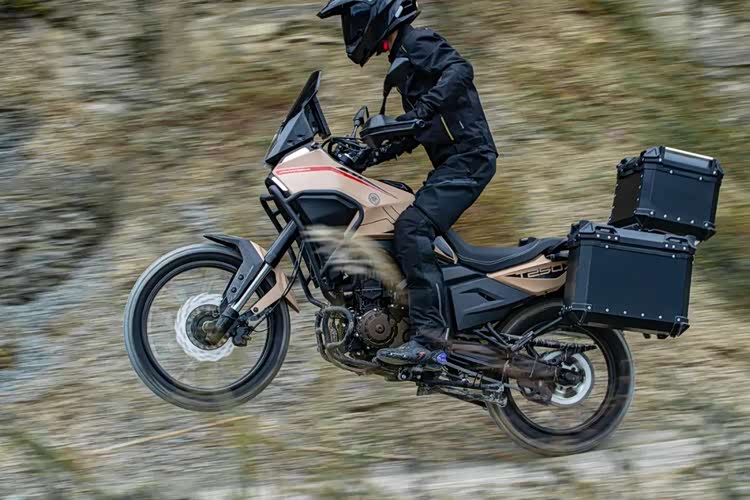 动力部分,T250X采用了一台单缸水冷四气门250cc发动机,18kW的最大功率和21N.m的扭矩,对于151kg整备质量的T250X来说,已经足够带着车主和露营装备爬上人迹罕至的山峰,去寻找一片风景秀丽的露营点。