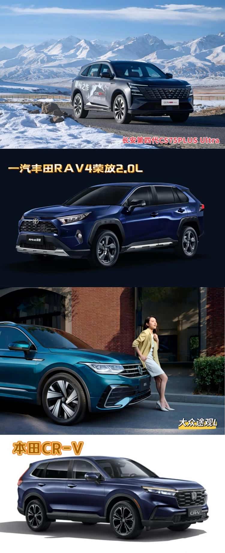 随着SUV市场的竞争愈加激烈,消费者对于车型的动力系统有了更高的要求。为了帮助大家更直观地了解不同车型的动力表现,最近进行了一项全面的动力横评测试,参与测试的车型包括长安第四代CS75 PLUS Ultra、上汽大众途观L、东风本田CR-V以及一汽丰田RAV4荣放2.0L。这场“动力较量”不仅涉及满载零百加速测试、最大马力、最大扭矩等核心性能指标,更为消费者展示了四款车在动力表现上的差异。结果令人惊讶,长安第四代CS75 PLUS Ultra凭借其出色的动力系统,脱颖而出。