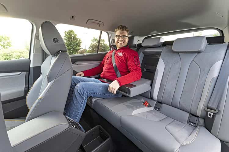 虽然省下来的2200欧元可以用来购买更舒适的座椅,但即使你先额外支付也不提供这样的选择。在前排,驾驶员的坐姿非常高,车内空间宽敞,但后排的40 : 20 : 40分体式座椅靠背倾斜得也很厉害,几乎让人感觉像坐在牙医的治疗椅上。后排头枕的作用也不尽如人意:它们的位置太靠后,而且高度不够,导致乘客的头部会撞到全景天窗的框架而不是头枕。
