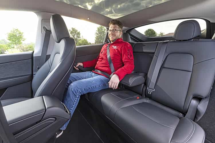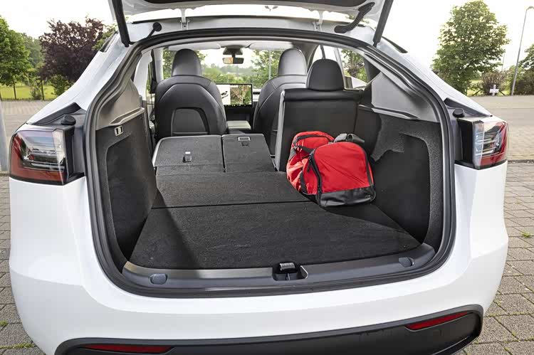 还有一点值得注意的是,Model Y的悬挂舒适性。其行李厢在后排座椅放倒时可以容纳超过2000升的行李。与我们的长期测试车(配备21英寸轮圈的四驱高性能版)相比,这款车在反应灵敏度和对路面的吸收能力方面表现更佳。这可能归功于标配的19英寸轮圈。因此,我们建议:不要选择昂贵的20英寸轮圈!