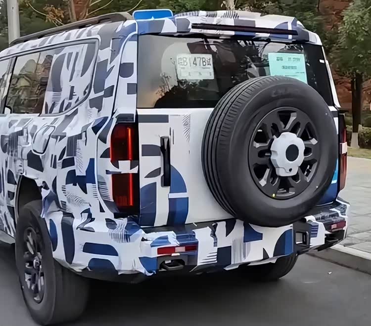 车尾部分,后窗面积不大,两边是竖着的尾灯,跟前大灯呼应。之前曝光的山海T5测试车也是这种尾灯,估计是“纵横”序列的家族设计语言。
