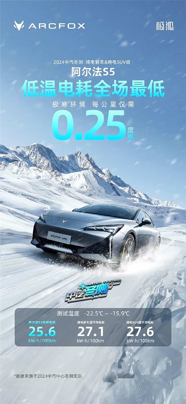 与传统燃油车不同,纯电动汽车在冬季面临的首要挑战便是电池续航的衰减。极狐阿尔法S5通过搭载高效热管理系统,在中汽冬测的极寒条件下(零下22.5度至零下15.9度),以百公里仅25.6kW·h的电耗,刷新了低温电耗记录,每公里电耗低至0.25度,远超同级别车型。这一成就不仅彰显了极狐在电池管理技术上的深厚积累,更为用户提供了实实在在的续航保障,让冬季长途出行不再焦虑。