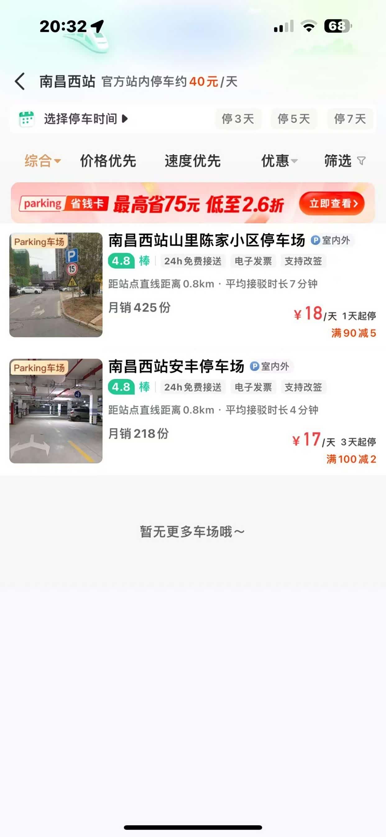 因此,自驾成了我前往南昌西站的最佳选择。既方便又快捷,还能直接到达车站,省去了不少麻烦。南昌西站作为重要的交通枢纽,每天车流如织,热闹非凡。然而,官方停车场的每日最高收费40元,对于短途出行或许还能接受,但对于需要长时间停放的车主来说,确实是一笔不小的开销。好在,现在有了更实惠的选择。您可以通过【小强停车】,就能预约到南昌西站附近的停车场,价格低至17元/天,且输入邀请码88,还可领取38元停车券。这些停车场距离车站步行即可到达,无需担心搬运行李的困扰。