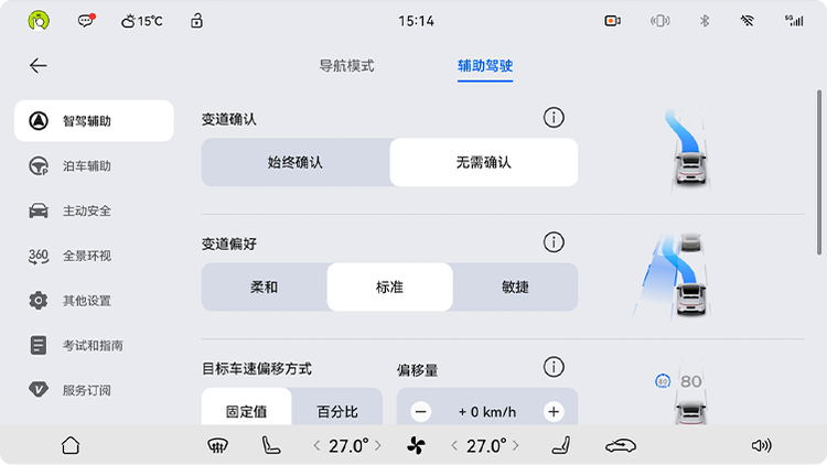 在智能座舱层面,新增主驾三组座椅位置记忆功能,新增迎宾点亮大灯,新增导航变道场景意图提示,语音车控功能覆盖范围以及座椅迎宾和记忆逻辑也得到了扩展与优化。