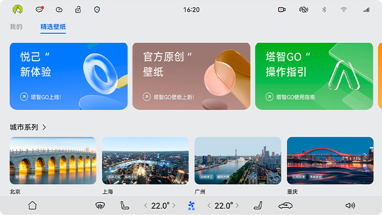 车机端新增了数字商城APP——“塔智 GO”,用户可直接从中控屏进入商城,并选择心仪的壁纸。此外还新增在线电台功能。