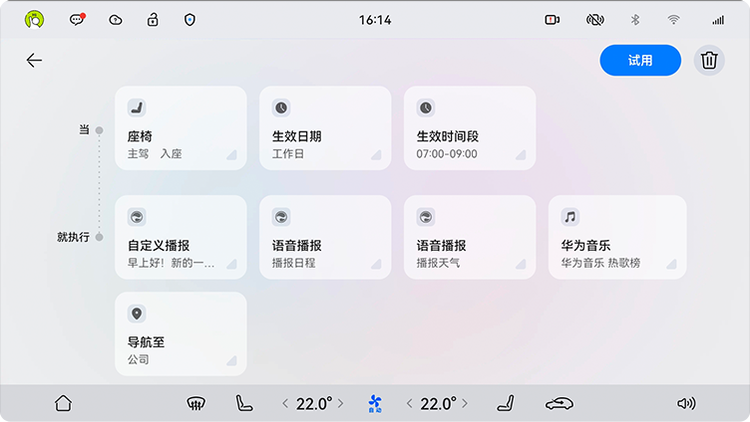 阿维塔07则迎来了以下专属升级。在智能座舱层面,手机遗忘提醒功能,可在主驾位用户下车且手机遗忘在无线充电面板上时,播报提示音;智慧场景编排功能,可让用户根据需求设置座舱智能场景,自定义场景触发条件以及语音播报、空调、座椅功能等座舱功能联动组合。