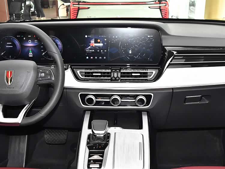 内饰部分,2025款红旗HS5将配备双12.3英寸连体屏,并搭配三辐式多功能方向盘以及电子换挡机构,看起来档次感以及科技感都有所提升。