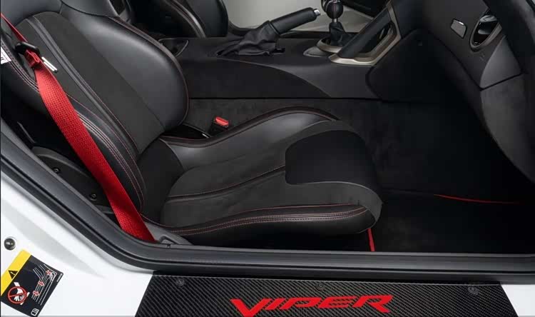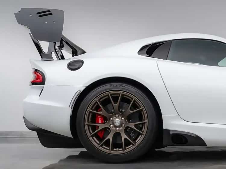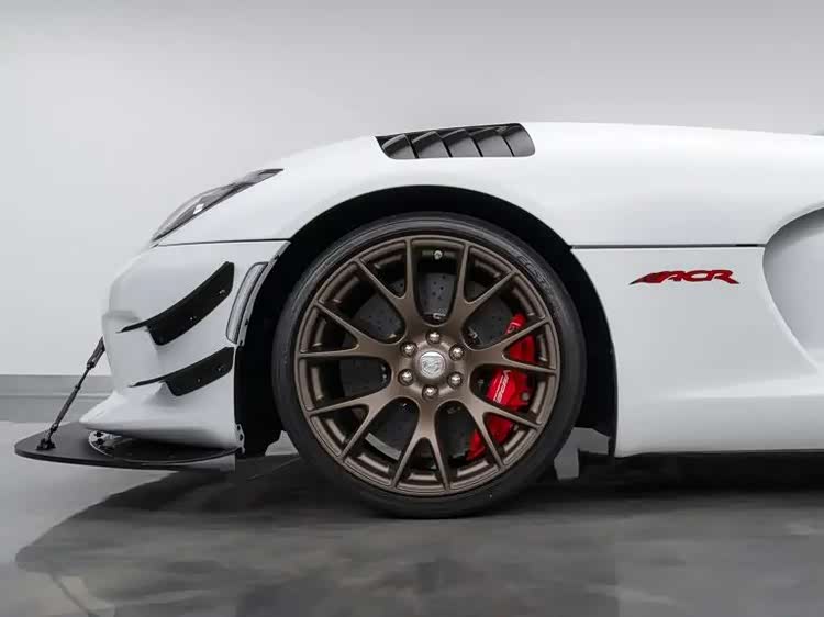 照片里这辆道奇蝰蛇ACR采用白色车漆,大量碳纤维,Y型辐条合金轮毂的后面你可以看到红色制动卡钳。这款车的内饰主体为黑色,拥有红色点缀。尽管这辆车诞生于2017年,但时至今日它的状态依旧非常完美。
