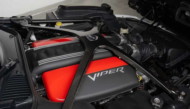 长长的引擎盖下搭载的是一台巨大的V10发动机,排量为8.4升。最大功率达到了654马力和813牛·米的扭矩,传动系统匹配6速手动变速箱。仅需三秒半即可达到每小时60英里(97公里/小时),最高速度为每小时177英里(285公里/小时)。