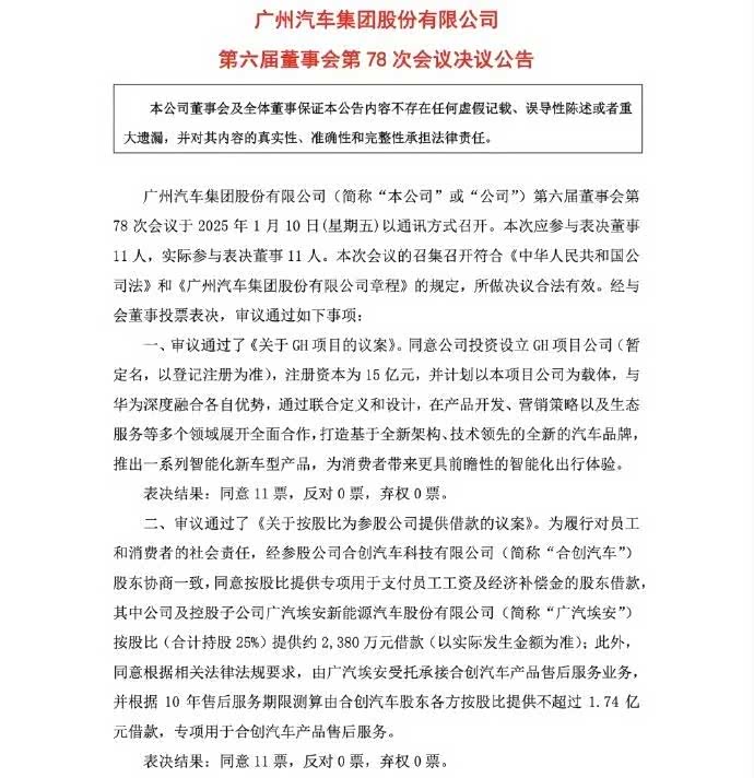 直到2025年1月10日的广汽集团董事会,从会议公告中基本坐实了合创汽车倒闭的传闻。同时,作为合创第二大股东,广汽提供2380万元人民币借资用于合创员工工资及经济补偿,未来10年的售后服务由广汽埃安托底承担,预估金额1.74亿元人民币。换句话,合创汽车这个烂摊子,广汽集团牵头收拾,其他股东也得参与负责。