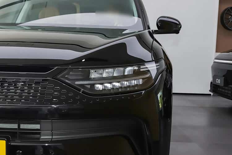 零跑C11的外形设计延续了家族风格,整体造型简洁流畅,同时又不失力量感。引擎盖上的弧线设计柔和自然,搭配肌肉感十足的线条和刀锋般的结构,营造出一种动感与优雅并存的视觉效果。车头部分,贯穿式头灯设计非常抢眼,中间细长、两头圆润的造型不仅提升了辨识度,还让前脸显得更加宽大。封闭式前脸设计符合新能源车的特征,内凹陷的造型与两侧导流槽相连,进一步优化了空气动力学性能。下格栅采用扁平化设计,搭配银色镀铬装饰条的前唇,既增添了层次感,又为整车增添了一丝精致与时尚。