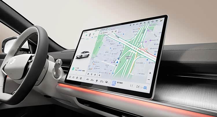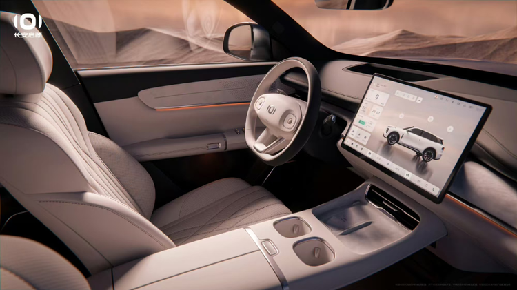在内饰设计上,长安启源Q07延续了其家族化的座舱设计,前排的视觉线条显得非常规整,AR-HUD与中央的“向日葵”可旋转显示屏的组合显得非常科技。平底式的多功能方向盘和怀挡式的换挡杆使得驾驶舱显得更为简洁。