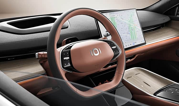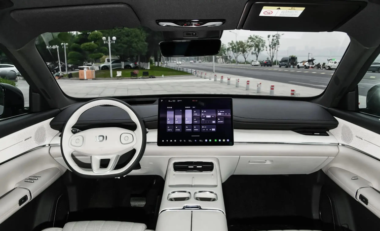 在副驾驶席上,有一块12.8英寸的娱乐屏放在了传统的化妆镜位置。这与“零重力”座椅相结合,其靠背的最大调整角度可以达到150度,而腿托的长度也达到了320毫米,坐在上面应该感觉非常舒适。前排的中央扶手区域是分层设计的,上面有两个杯架和一个带有无线充电功能的手机储物格,实用性很高。