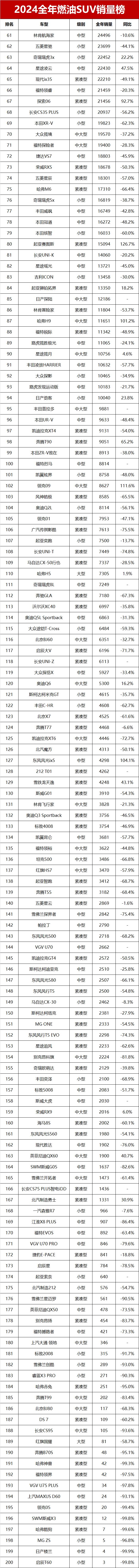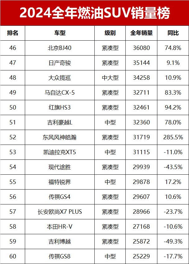 对于2024年全年国内燃油SUV的市场销量情况,你怎么看?欢迎留言讨论。