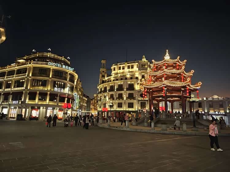 临近傍晚,踏入小公园骑楼群,仿佛走进上世纪30年代的胶片电影。中山纪念亭如一枚金色纽扣,缀在放射状街巷织就的扇形路网中心。