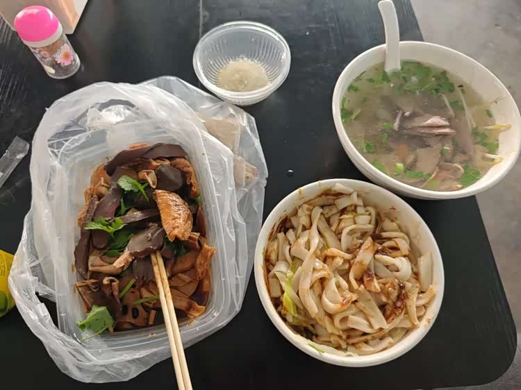 潮汕的美食总能带给我惊喜。白天,路边摊档一份沙茶拌粿条配猪肝蛤蜊汤,只需11元,就能品尝到最鲜美的食材。