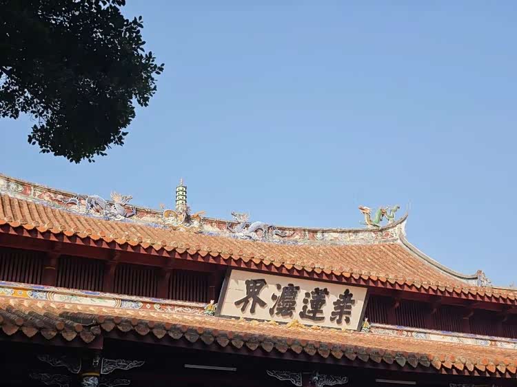 步入寺内,唐代石经幢上的梵文隐约可辨,宋代的木构斗拱如凤凰展翅,元代的陨石香炉静立檐下。大雄宝殿前,两株南宋菩提树已亭亭如盖,枝叶间筛落的阳光,穿越千载。潮汕特有的嵌瓷工艺,让原本色彩单调的屋檐雕塑,变得栩栩如生,如游龙戏凤。