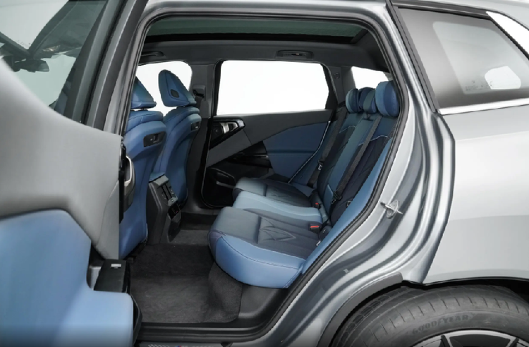 另外来到后排之后,区别于老款宝马X3,新车的全景天窗视野更广,能够为后排乘客带来更多的开阳感,同时还在天窗表面集成了与前中网相似的线条装饰,在夜间点亮之后可以提升车内的氛围感,同时也更有现在科技感。至于空间,2975毫米的车身轴距确实带来很大的差距,虽然后排依然有很高的中央凸起,但膝部空间确实有明显提升,而且左右两边座椅的坐垫还进行了加长处理,从而给乘客的大腿带来更好的支撑性。