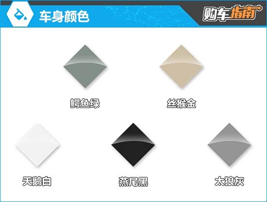 车身颜色方面,新车提供包括鳄鱼绿、丝猴金、天鹅白、燕尾黑和太狼灰在内的5种配色可选。其中,太狼灰和丝猴金颜值出众,消费者可以优先考虑。