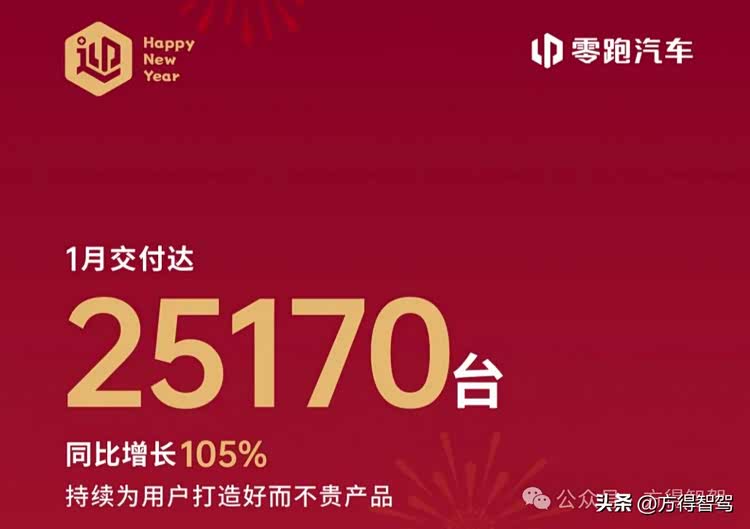 零跑汽车,1月交付25170辆新车,环比下滑40.8%,同比实现翻番增长。