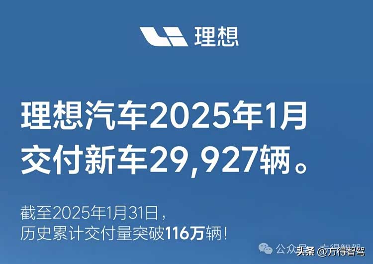 理想汽车1月交付新车29927辆,环比下滑48.85%,同比下降4%。考虑到2025年春节在1月,2024年春节在2月,可以预计,理想汽车2月份一定会实现同比增长。无论如何,理想汽车以L系列的增程SUV以及少量纯电MPV就能取得这样的业绩,也是最优秀的新势力。