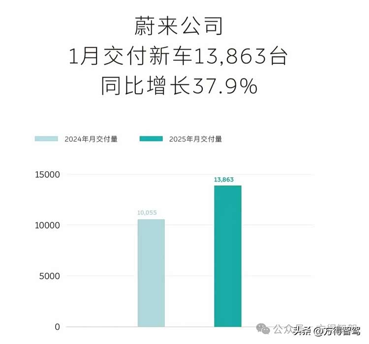 蔚来1月交付新车13863辆,虽然环比下滑55.48%,但同比增长37.9%。其中,蔚来品牌交付新车7951辆;乐道品牌交付新车5912辆。