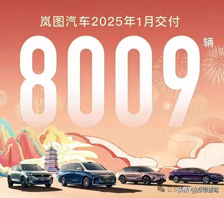岚图汽车1月交付新车8009辆,环比下滑34%,但同比增长14%。岚图汽车今年将冲刺年销20万辆目标。