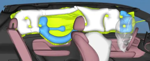 另外,该车车身用料非常扎实,有高达71%的部分都是高强度钢材,并且整体车身为一体式高强度侧围结构,在发生侧向碰撞时能够大限度保持座舱不变形,同时具备V字型的侧气帘,比起常规形状的侧气帘能够更好地防护女性和儿童的安全。