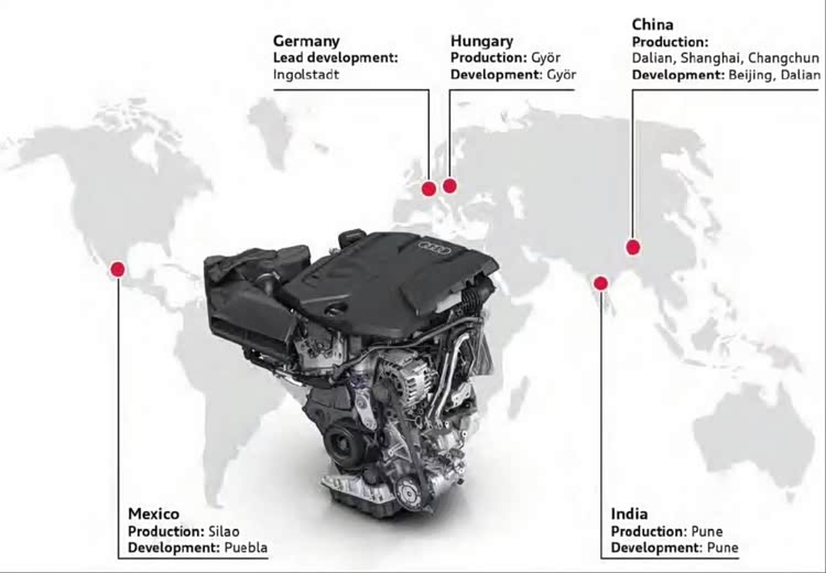 对比下来,不难发现第五代EA888在动力和燃油经济性上都有了显著进步,再就是有消息称它有望根治烧机油的问题,这也是很多消费者所关注的问题。而对车企来讲,之所以投产这台机器,是因为它能满足更高的排放标准,比如欧7以及国六b/RDE,甚至是国7等排放标准,这一点从最新发布的EA888 Evo5的生产分布图来看已经有所体现。